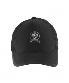 Fabric is 100% polyester pinhole woven mesh with structured profile, mid features, black reflective O heat transfer on side panel black reflective welding on bill, and OGIO seam taping. Low-profile hook and loop with black reflective stacked O heat transfers.